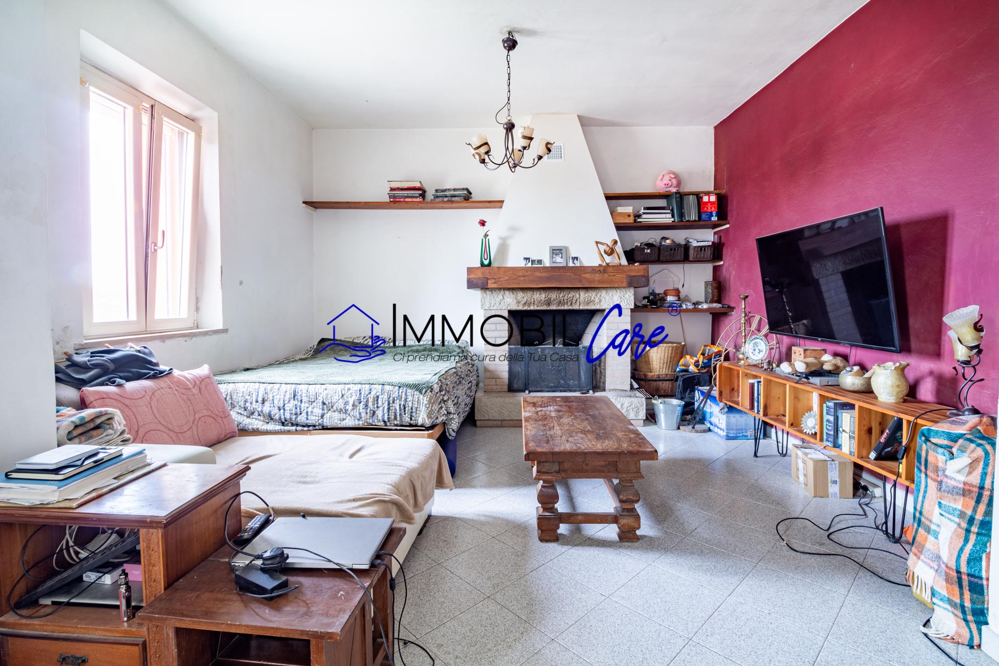 L'accogliente ingresso al piano terra è diretto nell’ampia e luminosa sala con camino perfetta per serate in famiglia, mentre separata troviamo una spaziosa cucina abitabile . A completare il piano una porta finestra che ci conduce allo spazio esterno e il bagno funzionale finestrato con doccia. Una comoda scala interna ci accompagna alla zona notte situata al primo piano , che attualmente necessita di essere ultimato ,dove troviamo la camera matrimoniale, la camera singola, uno studio che puó essere adibito a terza camera , e il bagno con doccia finestrato.